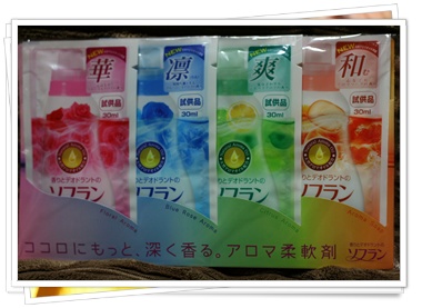 buzzlifeさんより、「香りとデオドラントのソフラン」本商品1本と4つの香り入りサンプルセットを頂きました。